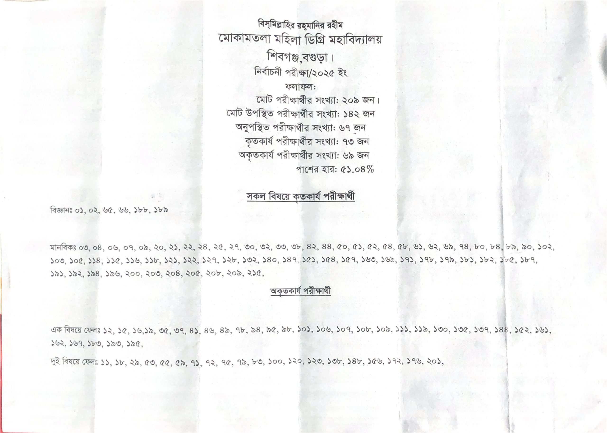 ঠিকানাঃমোকামতলা মহিলা ডিগ্রী কলেজ ,মোকামতলা, শিবগঞ্জ, বগুড়া। যোগাযোগঃ০১৩০৯-১১৯৯০৯